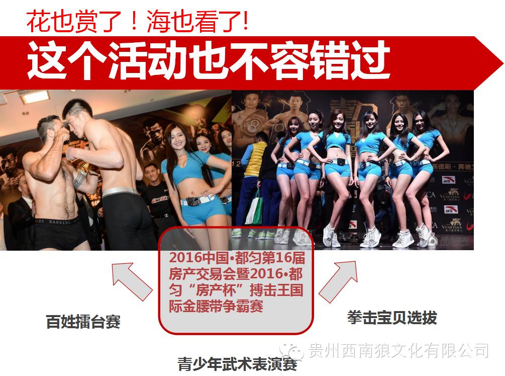 及拳击宝贝的吸引力,引起全州人民的关注。100名备选拳击宝贝相继登场,不一样的视觉冲击力。当天活动现场将会异常火爆。赞助企业借势宣传与营销,为赞助企业赢得更多的知名度以及经济效应。