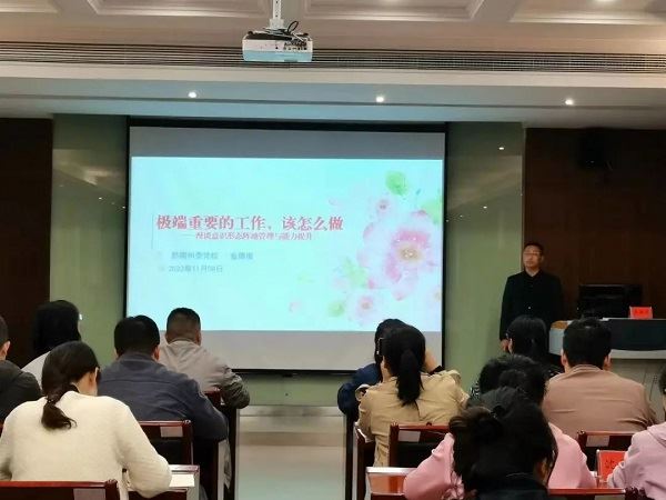 意识形态工作作为一项极端重要工作,事关党的前途命运和国家的长治久安。黔南州委党校办公室主任金德俊以“极端重要的工作,该怎么做——漫谈意识形态阵地管理与能力提升”为题,立足医院意识形态工作实际,深入浅出,以扎实的理论、丰富的工作经验和典型生动的案例为全体学员上了一堂意义深刻的专题培训课。