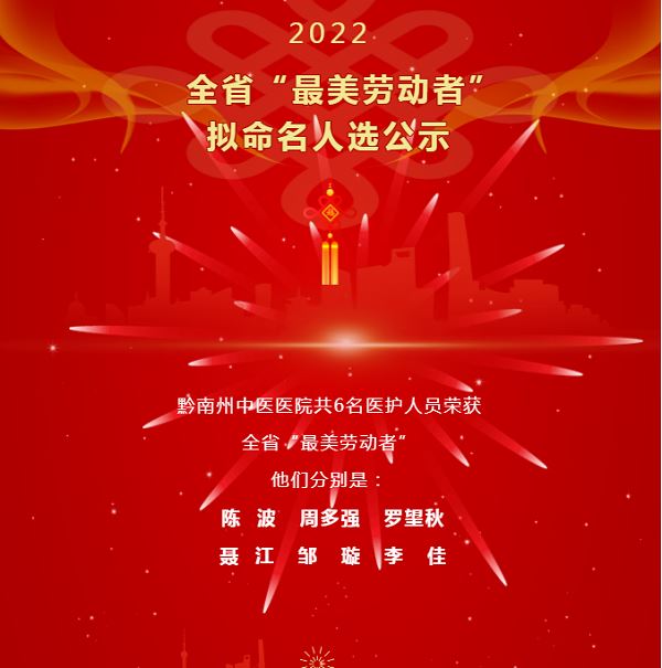 黔南州中医医院6名医护人员荣获全省“最美劳动者”