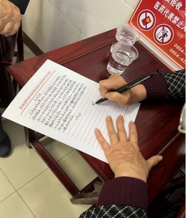 就诊结束后,老人执意要写下这封感谢信。老人说:“我们不会用智能手机,不会上网,只能用这种传统书信的方式表达自己最真诚的感谢了。”