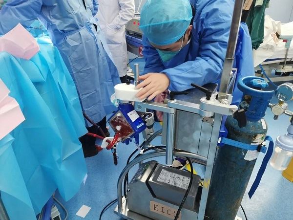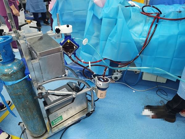 经过重症医学科专家团队讨论分析,患者心脏射血分数仅15%,心脏基本无法泵血,随时可能再次发生心脏骤停而死亡,要挽救患者生命,就必需采取VA-ECMO技术(静脉—动脉体外膜肺氧合)暂时代替患者无法工作的心脏。